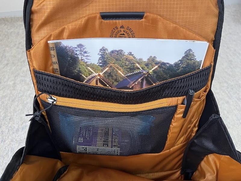 正面右上には、GREGORYのブランドネームが刺繍されています。